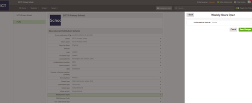 To record this in Arbor go to School/School Details/Weekly Hours open and enter the details