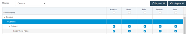 The permissions required to run and troubleshoot the Census are found in the Census Module of Config>Setup>Roles and Permissions. Select the Role then go to the Census Module Each tick box on the right determines which functions are visible/available on the page for users with the selected Role.
