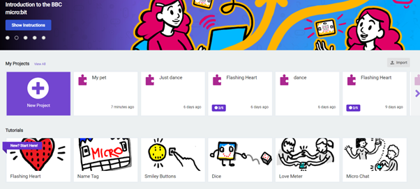 Pupils have the option to either ‘create a new project’ and have time to tinker to see what they can create or there are a range of ‘tutorials’ on the website that pupils can use as a starting point.