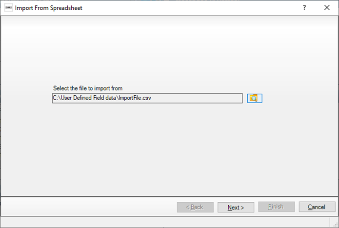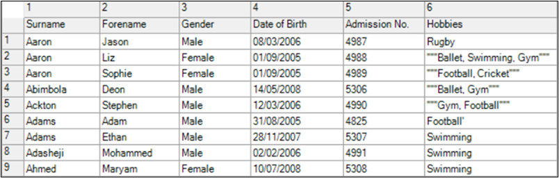 The CSV file can contain as many fields as required but as a minimum for import, the file must contain:
