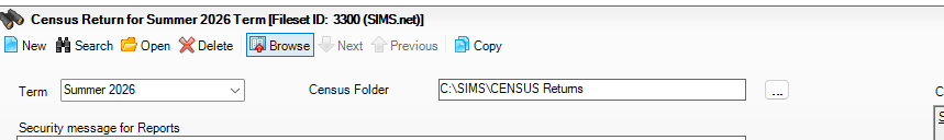 Requirements: You must be using SIMS.net version 7.228 Spring upgrade with the latest fileset in the 3300 series. This must be fileset 3301 or higher. Without the latest fileset your Census will NOT be accurate. Please check our website for the latest news before starting your census -. SIMS latest Census Guidance.