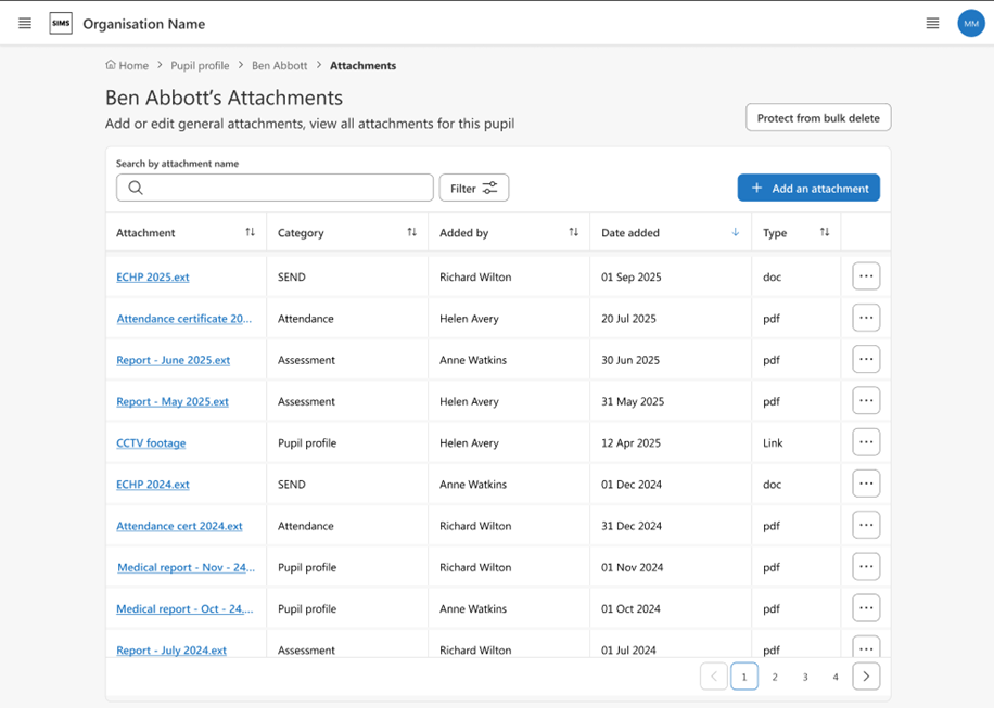 Bringing together a child’s documents from across Next Gen this will allow you to see all the documents you have permission to see against that child in one place. You can also add additional documents to this area which do not have sit elsewhere in Next Gen. Schools will be able to navigate here from the new Pupil Overview