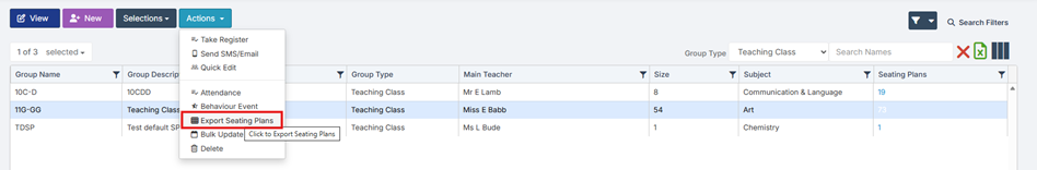 Once created, classes can be assigned to the room via the Seating Plans component.