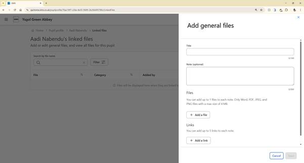 You can also upload additional documents that do not belong elsewhere in SIMS Next Gen.