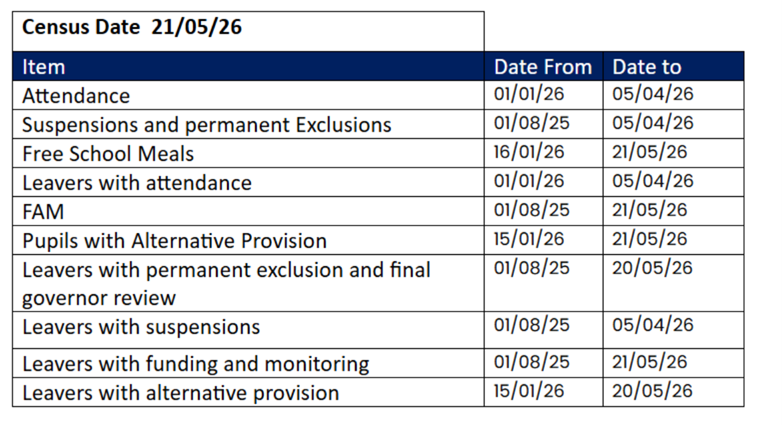 The school Summer Census is on Thursday 21st May 2026. There is a wealth of resources to help support you when completing the census.