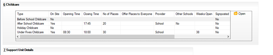 To record this in SIMS – Focus/School/School Details Panel 6 Childcare