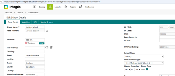 Check this has been recorded via Focus/School/School Details in Panel 1