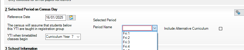 Panel 2 Select the Period on Census Day