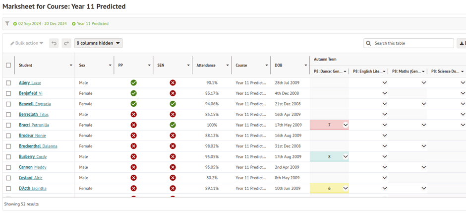 Click the ‘Show/Hide Names‘ button at the top and this add the student names under their UPN for easier viewing.