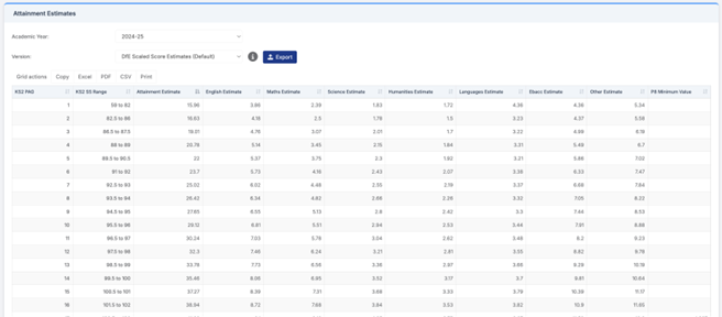 The ScholarPack summary differs from the Official summary by giving you the option to see which students are behind all the figures (via their UPN) in most tables either by using the ‘Show All Data‘ button along the top or the ‘Show Data’ button on individual tables –