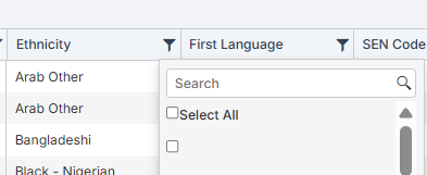 If you are looking at a particular census table, you can expand this further to show the student names after clicking either ‘Show All Data’ or ‘Show Data’.