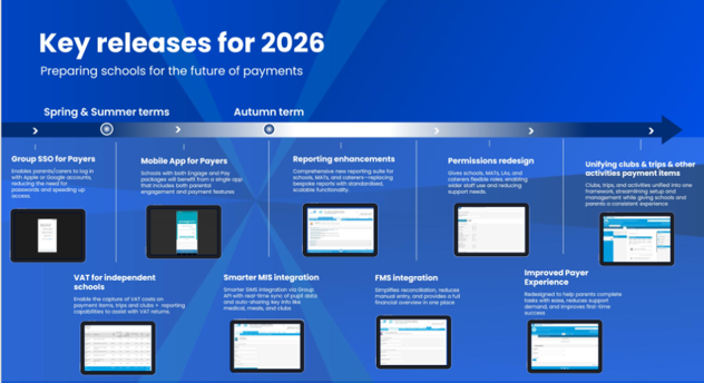 By the end of Spring 2026 every ParentPay group solution will be fully connected. Customers will benefit from one login, one platform through Sigle Sign On seamless integration via Group API Centralised access and reporting across every platform.