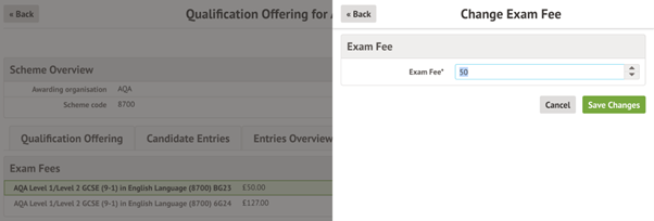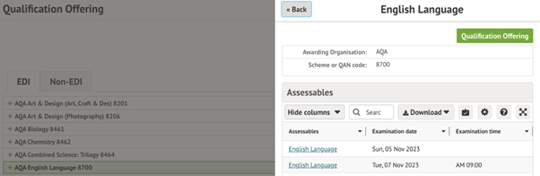 Go to School > Examinations > Qualification Offering and select the award. Click the Qualification Offering button in the slide over.