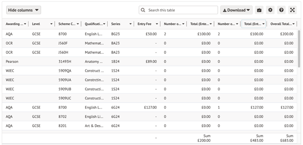 Arbor import exam fees information alongside the basedata so you can report on these directly in your MIS.