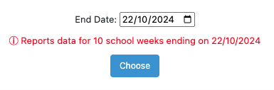 - Go to Reporting>Reports>Attendance>Attendance Penalty Notice Eligibility, set the end data (this will default to today’s date) and click Choose