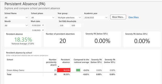 Persistent absence: drill down into different demographics to see persistent absentees within your school.