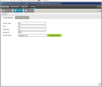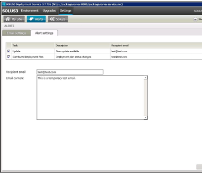 The ALERTS page enables Deployment Managers to set up SOLUS3 to send emails when certain SOLUS3 events occur. Such events are configurable in the Alert Settings tab.