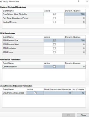 This feature was introduced to help schools track and monitor pupils unauthorised absences in line with the new regulations set by the DFE for issuing penalty notices. When set up it triggers an alert to identify when a pupil has hit 10 unauthorised absences over a 10 school week period. Please see the KB00056441 for more information.