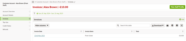 Staff profile, view & edit training
