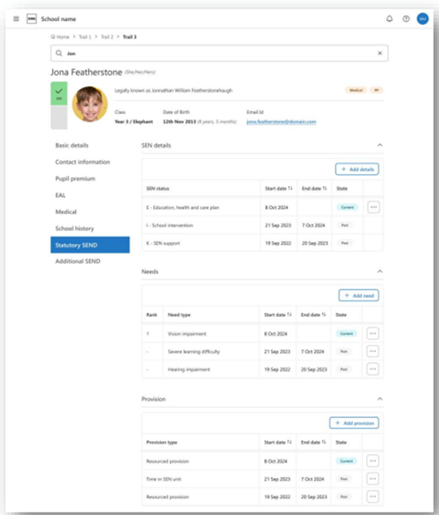 This screen shows SEND, but for schools in Wales, this will say ALN.