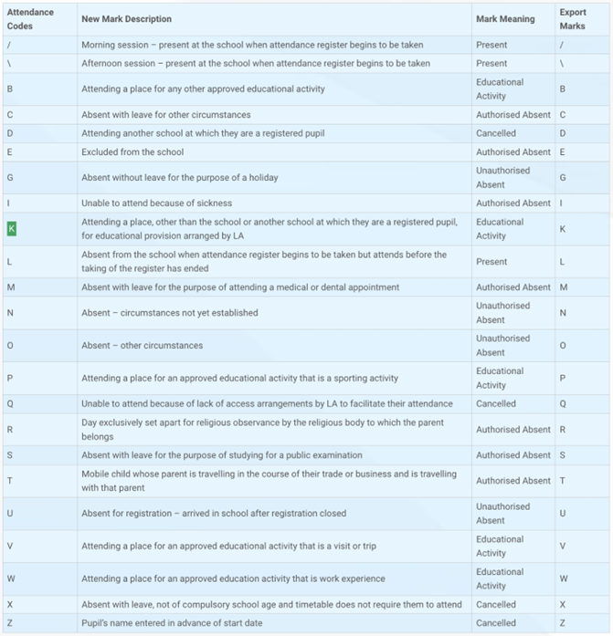 If the upgrade isn’t put on ready for September, then every code for every pupil for every attendance session will need to be re-input (even if it’s the same code), so please save yourself some work and ensure that this is done prior to August.