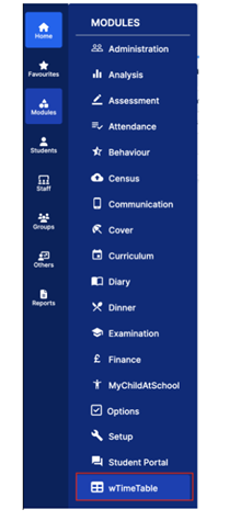 The new web Timetable module has been relabelled to wTimetable to distinguish it from the previous version labelled e-Timetable.