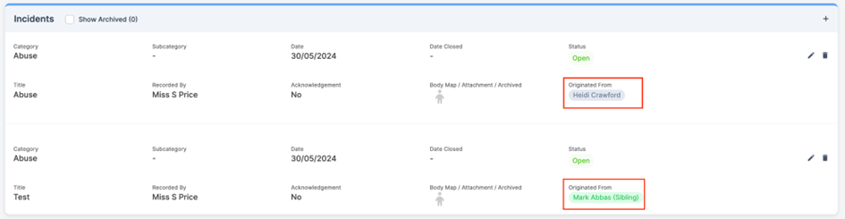 Note: Should the user edit a Safeguarding Incident and Save & Close, the ‘Originated from’ field does not retain the link. This will be resolved in the current sprint.