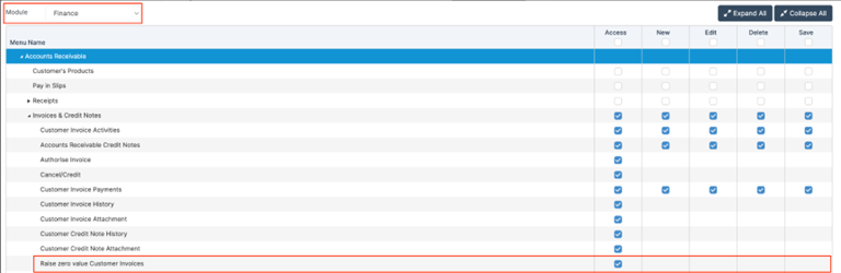 Config > Finance > AR Configuration