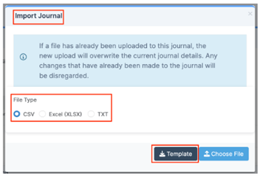 - Importing a Journal will always overwrite existing information in the Journal lines.
