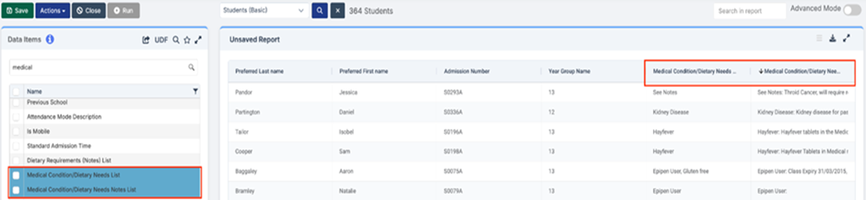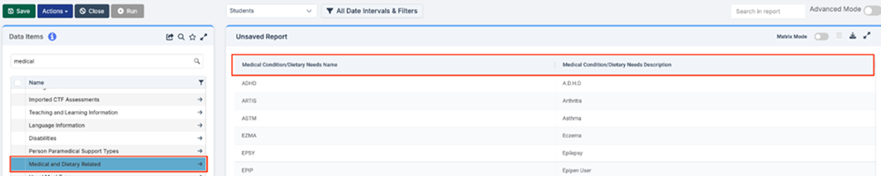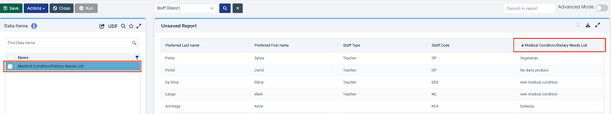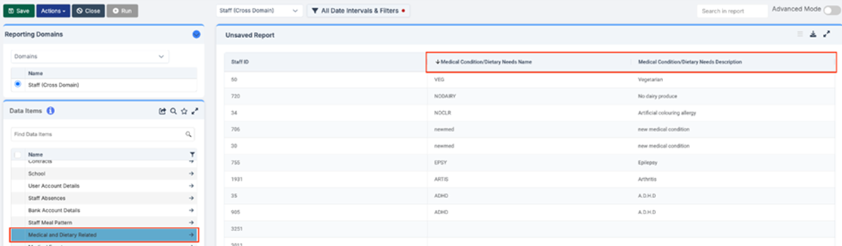 - Report Updates: We modified the affected reports to reflect the changes in the dietary needs data structure. This included updating queries, calculations, and formatting as needed.